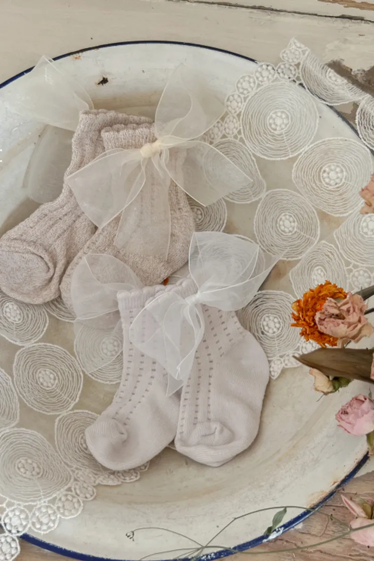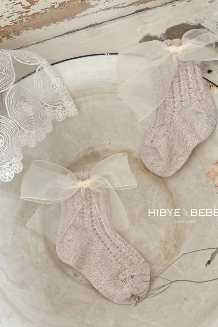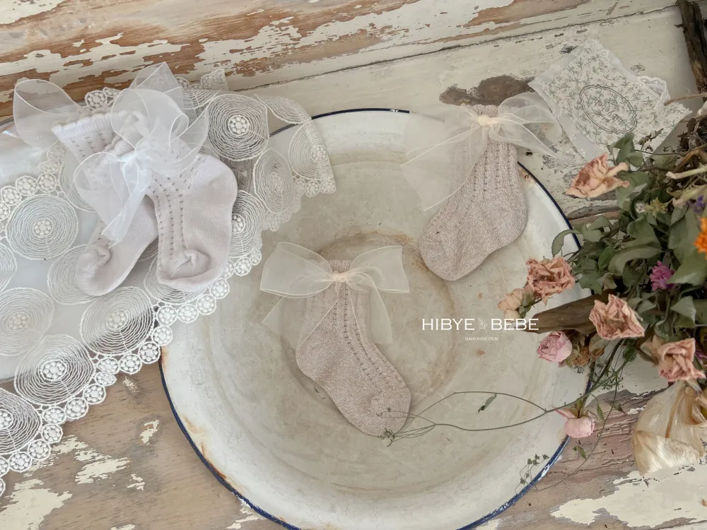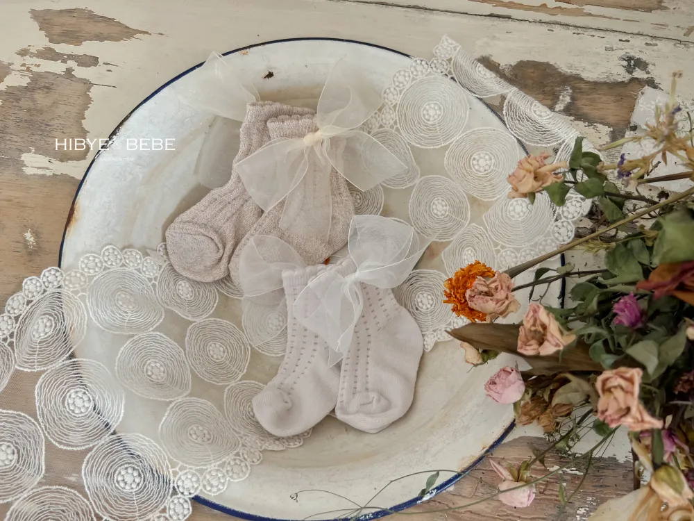 韓國/HibyeBeBe法式蝴蝶結襪套2入組